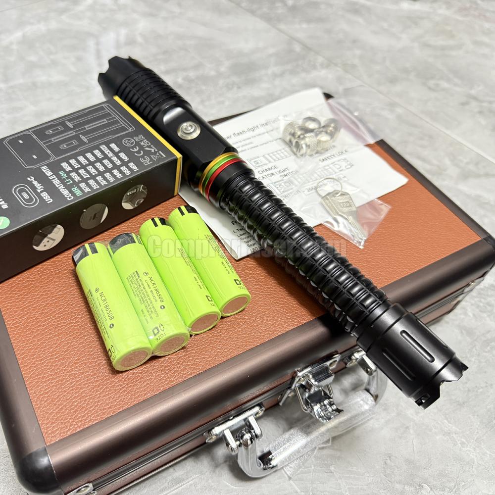 Tipo de paquete 1) Sin accesorios: solo un puntero láser (sin batería ni cargador). 2) Paquete estándar: puntero láser azul + dos baterías 18650 de ultraalta capacidad (3200 mAh) + cargador + gafas de seguridad (OD3) + manual de instrucciones en inglés + caja de aluminio. 3) Paquete profesional: puntero láser azul + cuatro baterías 18650 + cargador profesional + gafas de seguridad (OD4) + cinco cabezales de patrón + paño de limpieza de lentes + manual de instrucciones en inglés + caja de aluminio a prueba de explosiones.