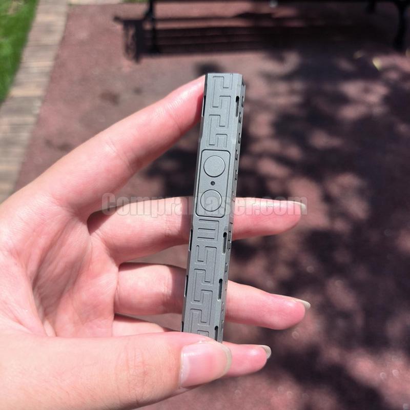 La carcasa presenta un diseño cuadrado con patrones laberínticos tallados. Es compacto, robusto y duradero. Puedes guardarlo fácilmente en el bolsillo para llevarlo cómodamente.