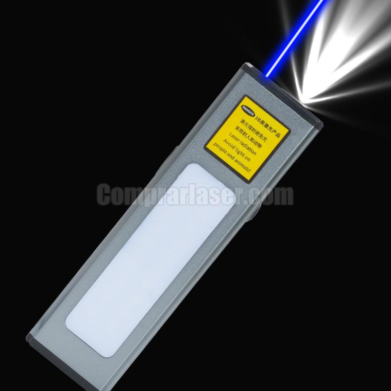 Esta linterna está especialmente diseñada para acampar de noche. Cuenta con un LED de alta luminosidad y un láser azul integrado. Su carcasa rectangular incluye una práctica función de carga USB. ¿Buscas una linterna LED con láser azul? Esta es la opción perfecta.