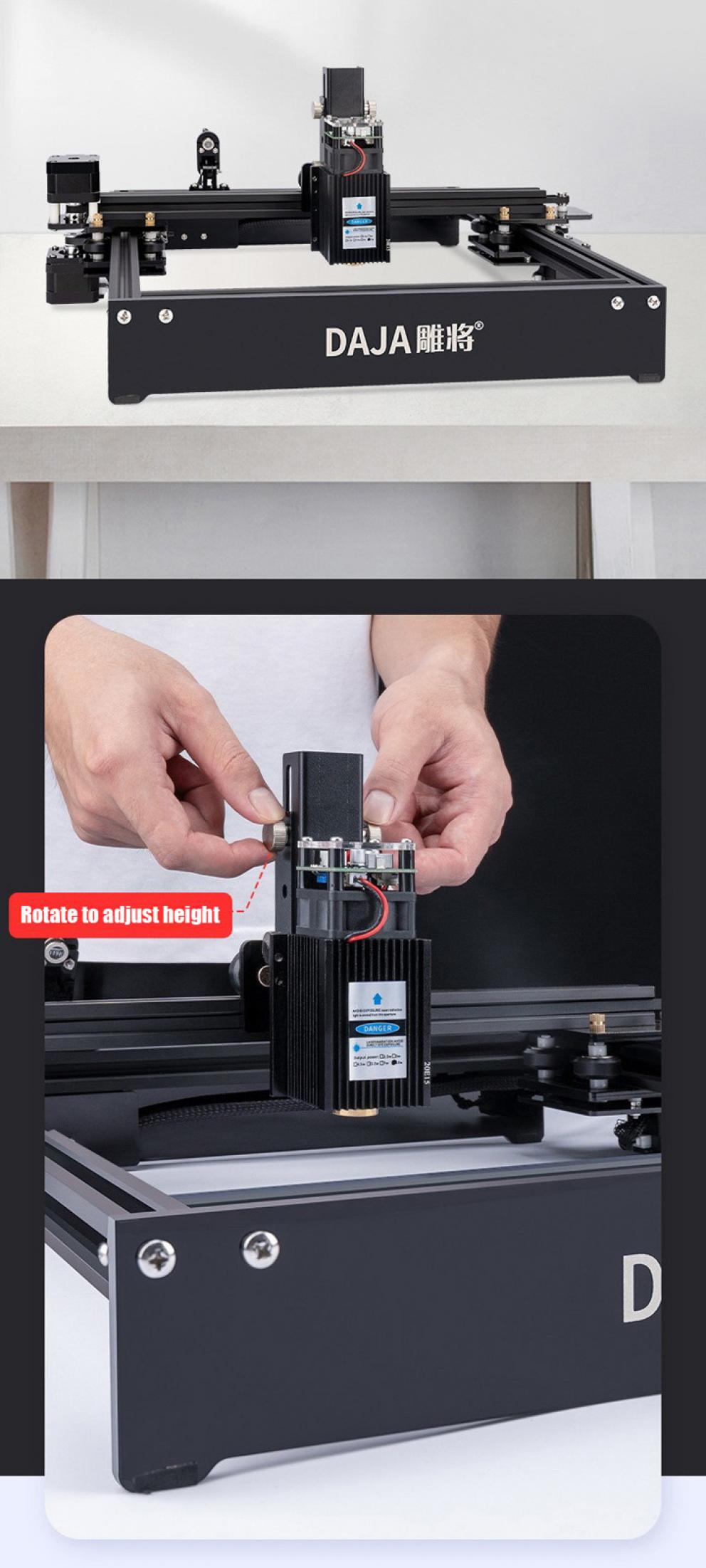 1) Esta grabadora láser de escritorio utiliza una pista de tornillo para levantar y ajustar la altura a su gusto.